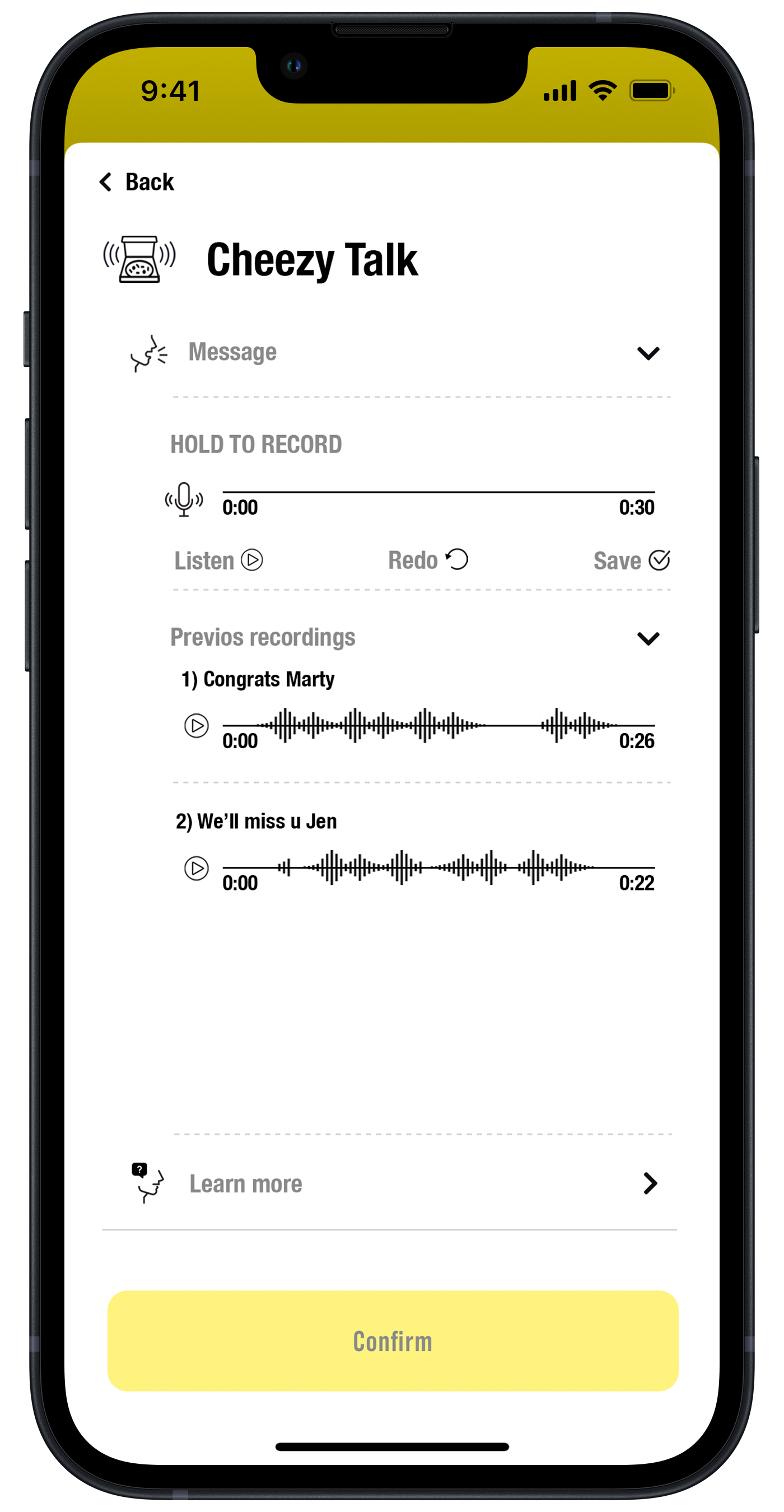 Record your message. Then, an expertly placed sound chip with your recording is placed within our pizza boxes. Every time the pizza box is opened, your message will be played. Want leftovers? Punch out the mini Maker pizza box that houses the sound chip and keep your message for life...or at least until the battery dies...